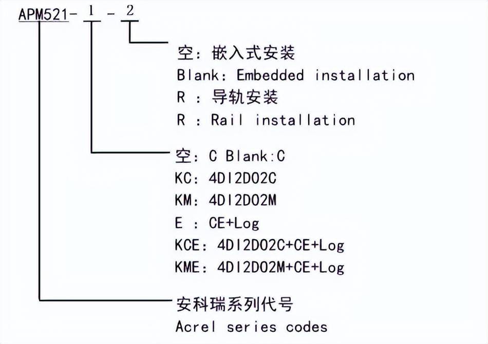 注:K:開關(guān)量,DI:開關(guān)量輸入,DO:開關(guān)量輸出,C:RS485 通訊,M:模擬量輸出,CE:以太網(wǎng)通訊,Log:定時記錄,R:導(dǎo)軌安裝。